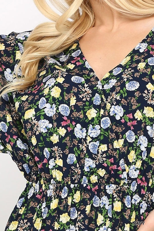 Navy Floral Print Dress