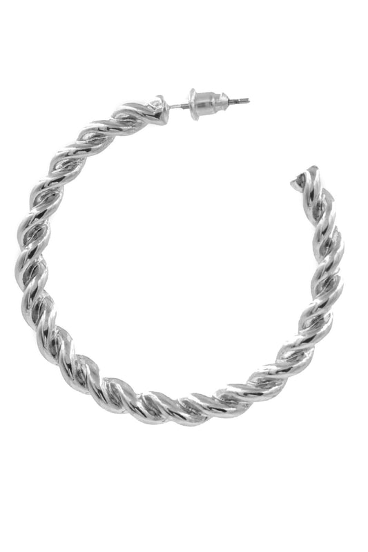 Silver Twisted Metal Open Hoop Earrings