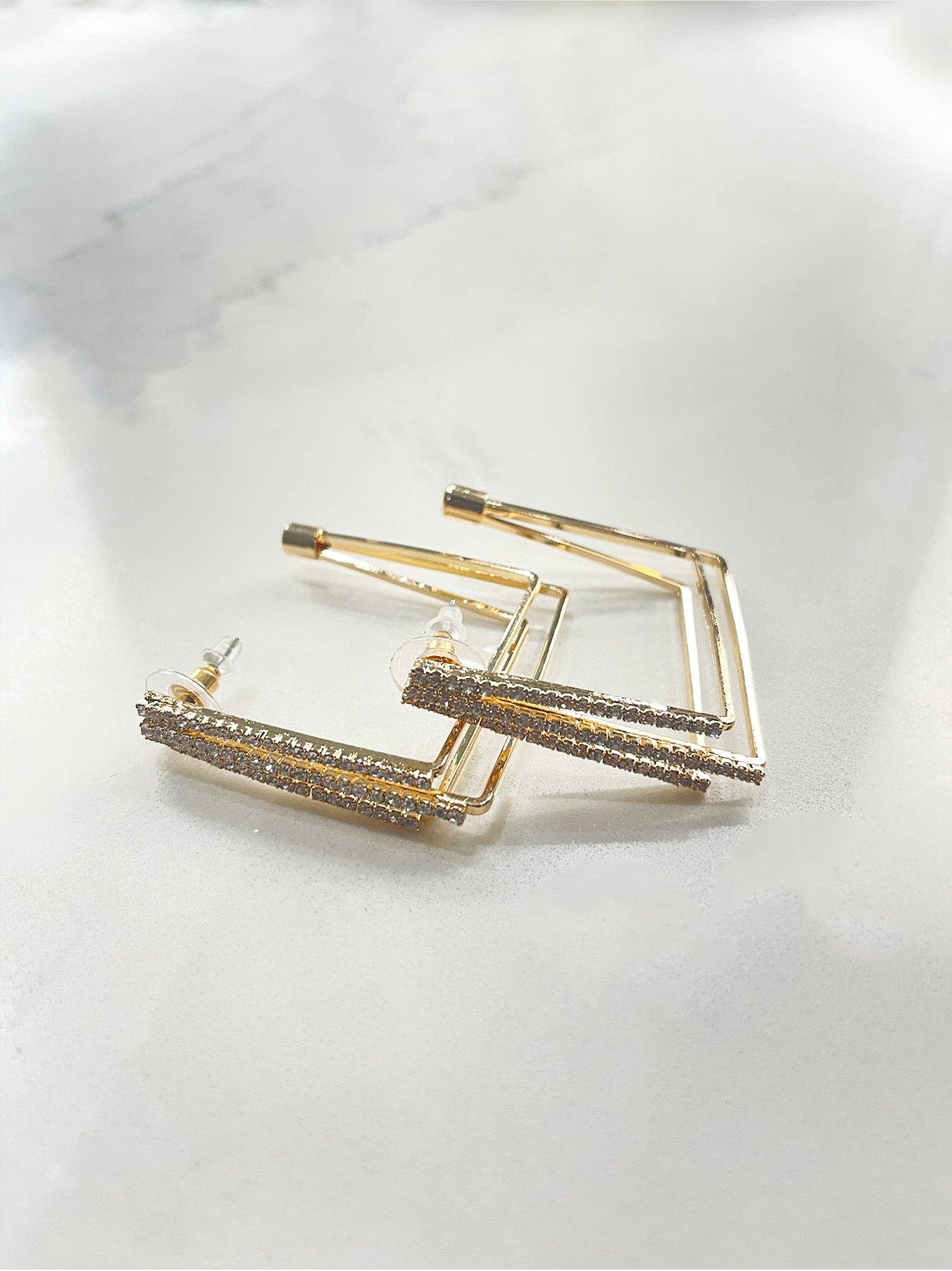Back In The City Gold Crystal Layered Square Hoop Earrings