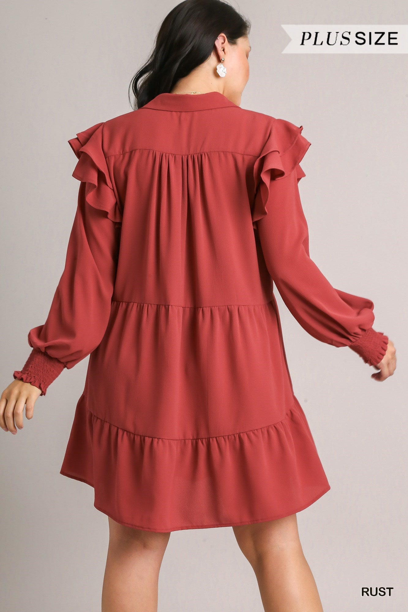 Get ready to turn heads with our flirty tiered collared dress! The double ruffle adds a playful touch, while the smocked long sleeves provide comfort and style. Perfect for any occasion, this dress is sure to make a statement.