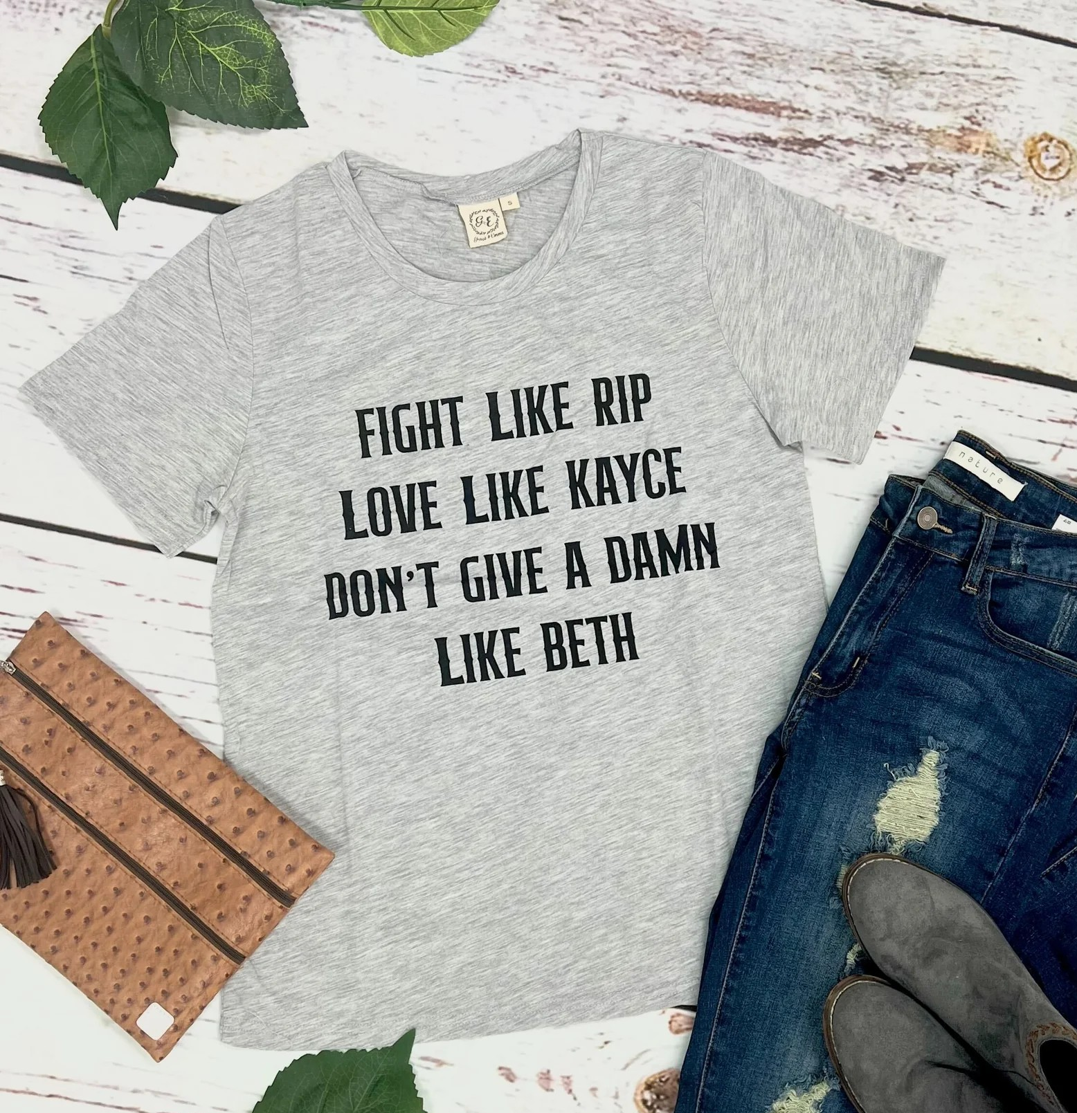 - Fight Like Rip, Love Like Kayce, Don't Give a Damn Like Beth Tee