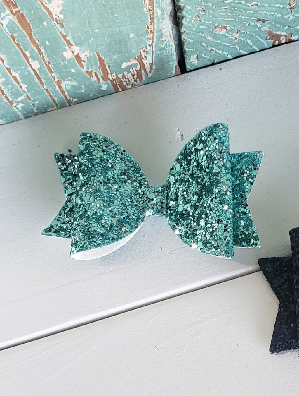 Featuring fun colors and a sprinkle of sparkle, these little bows will add a festive flair to any outfit!