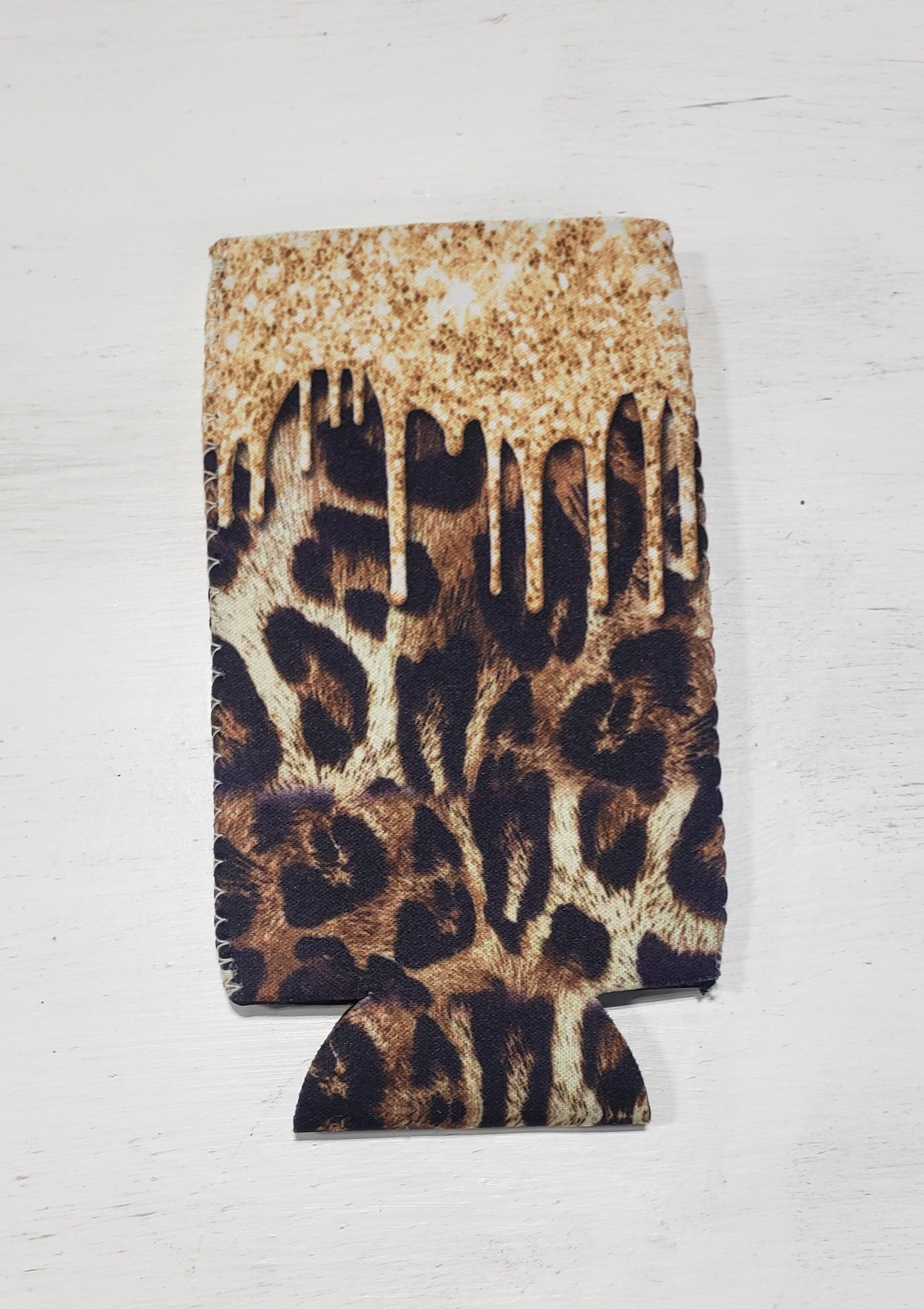 Bring style to the beach with this fabulously fierce Gold Drip Slim Can Cooler! With its leopard print and golden drips, you'll be the envy of your friends. Plus, it's slim fit will ensure your favorite beverage stays icy cold all day! Meow!