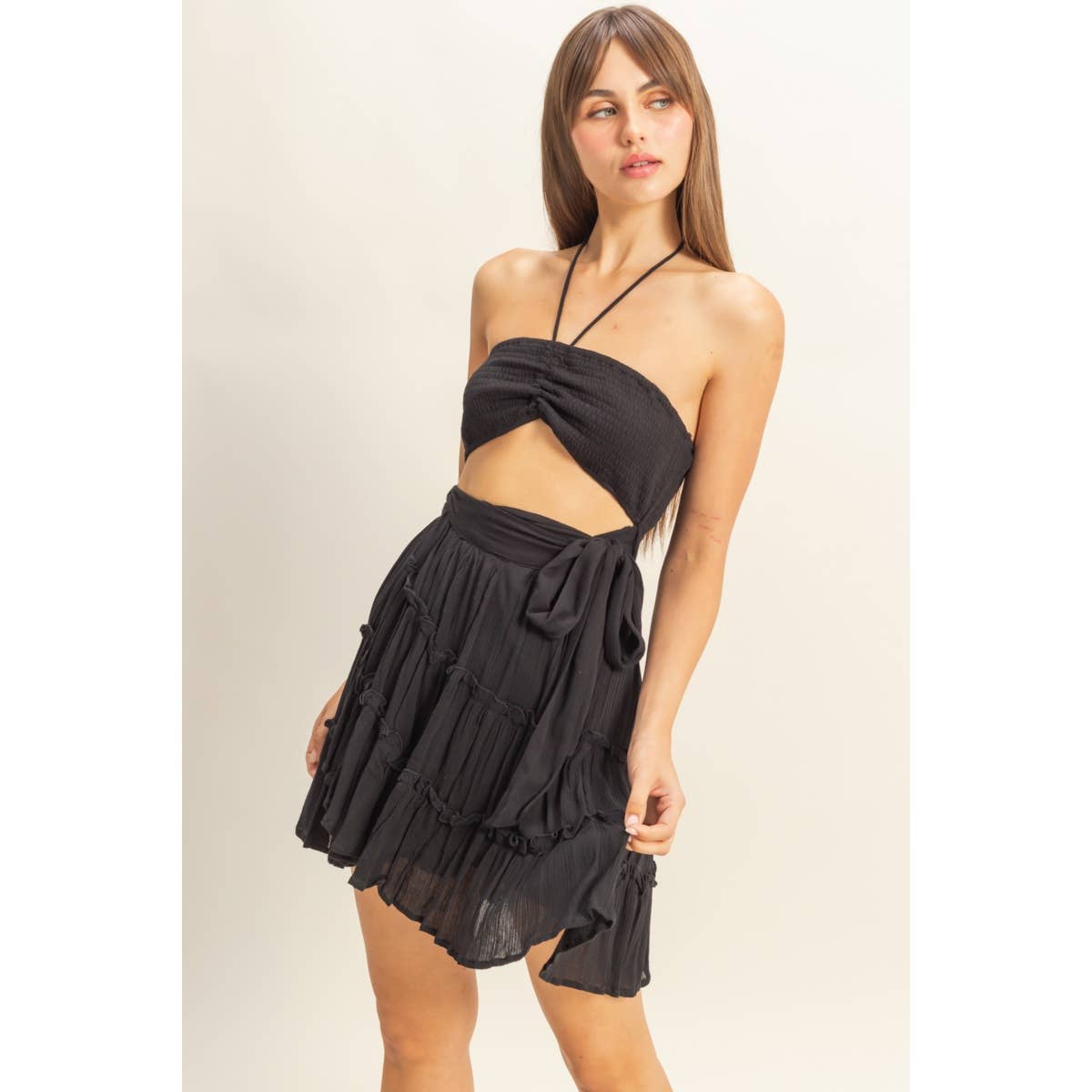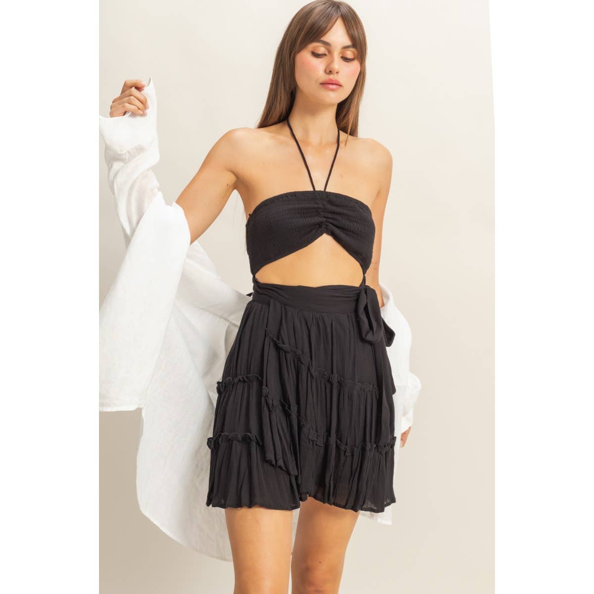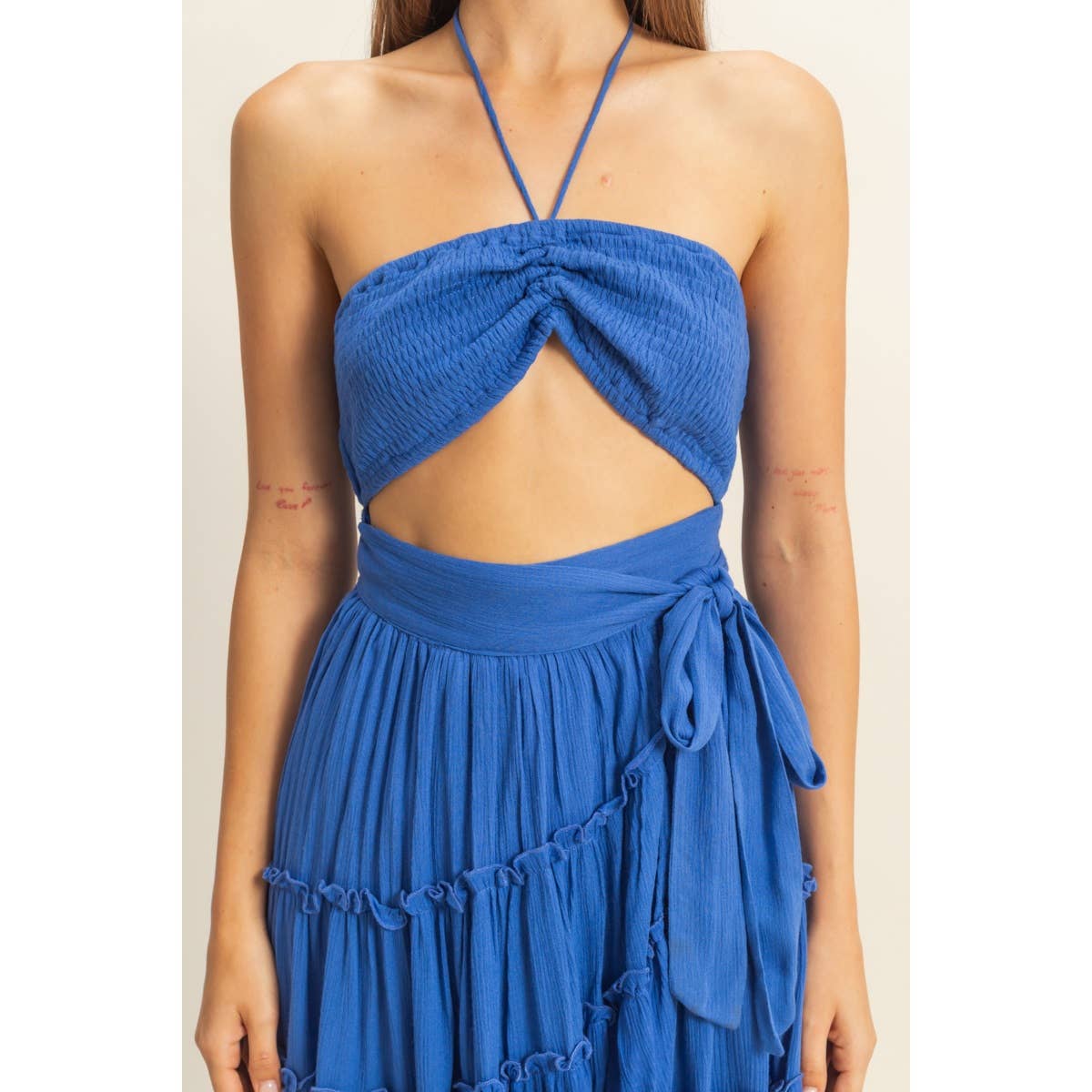 - Halter Neckline with Tying Straps
