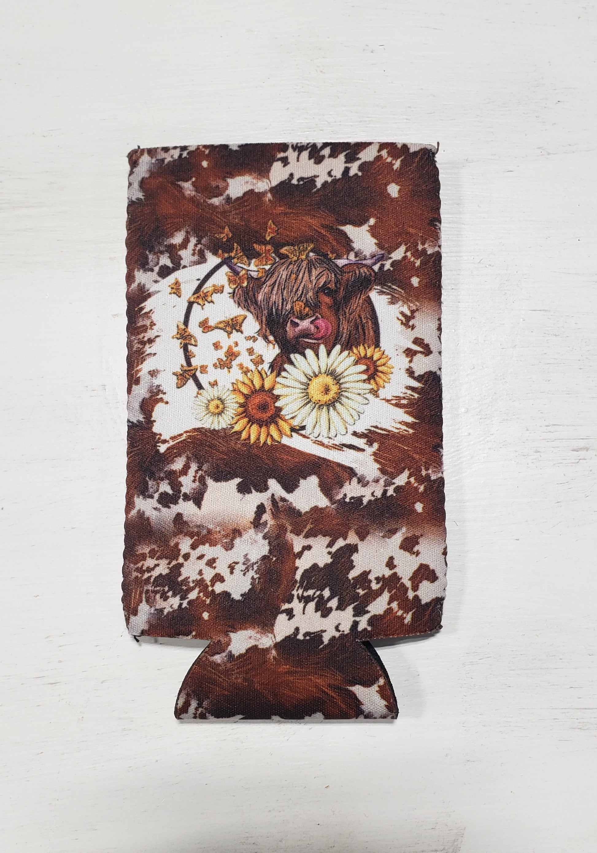 Keep your drinks cool and your swagger hot with this bovine beauty! This Highland Cow Slim Can Cooler is designed with a cool cow print and features a pocket for your ID and credit cards so you can party in style - no more bulky purses or wallets. Moooooo-ve it, cow-boy!