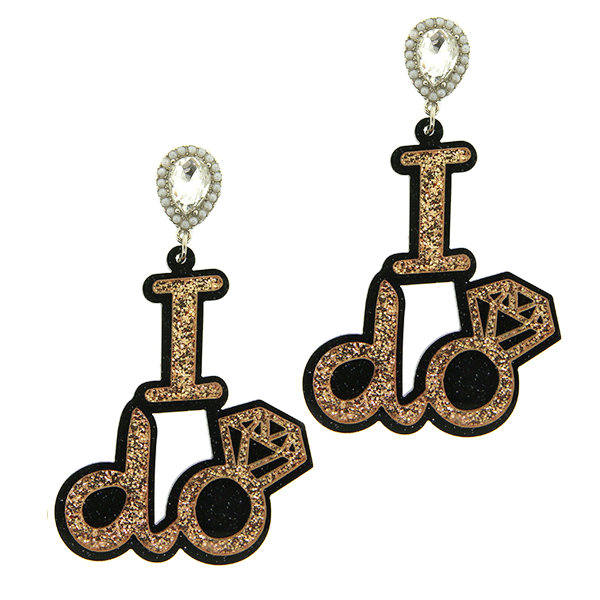 Let's get these wedding bells ringing! The 'I DO' earrings are the perfect accessory to add a touch of sparkle to your special day. Crafted from glittery drop resin, these beautiful bridal earrings come in two colors so you can mix and match to your heart's content! Say "I DO" to these gorgeous earrings!
