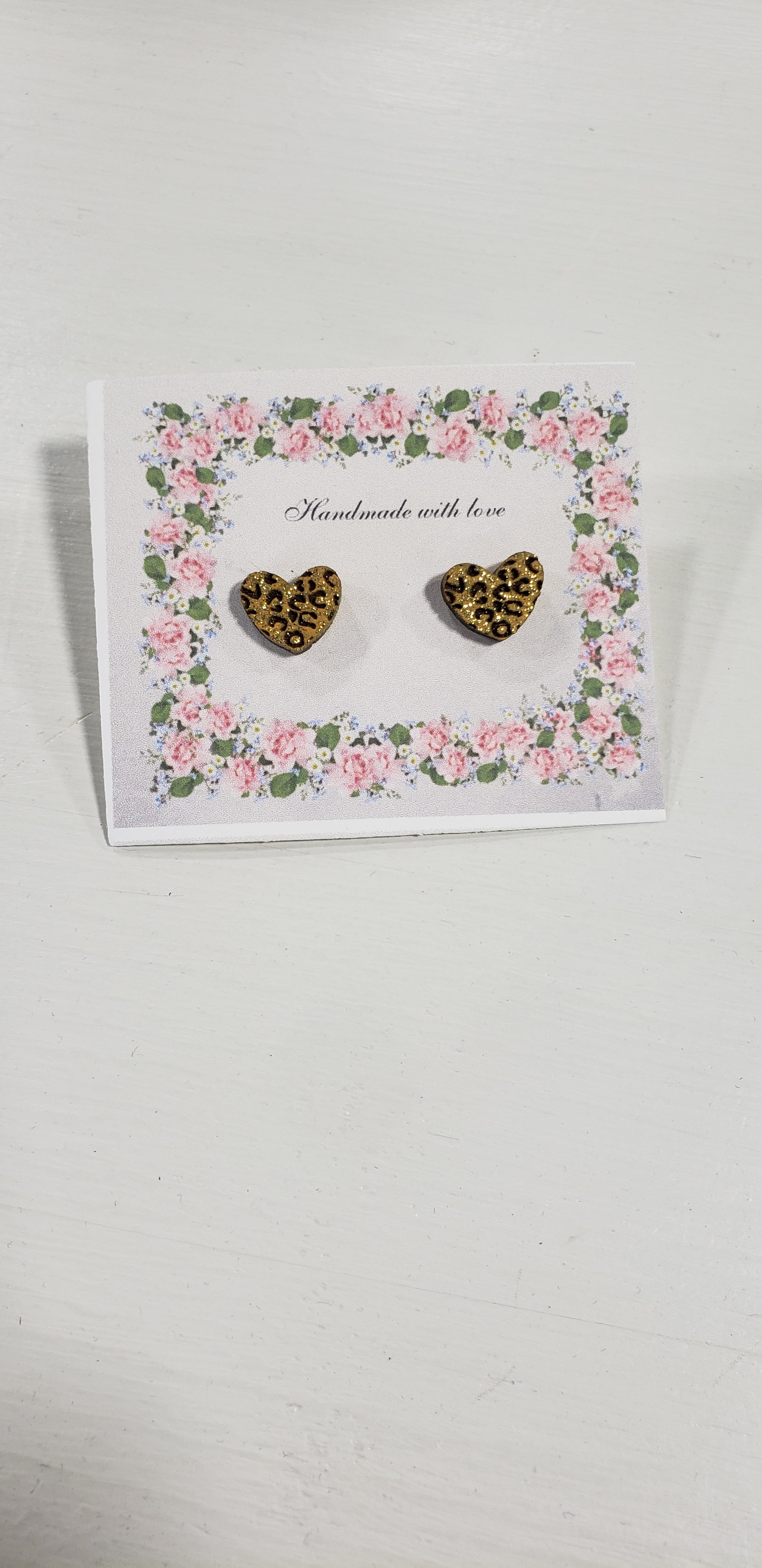 Leopard Glitter Heart Earrings