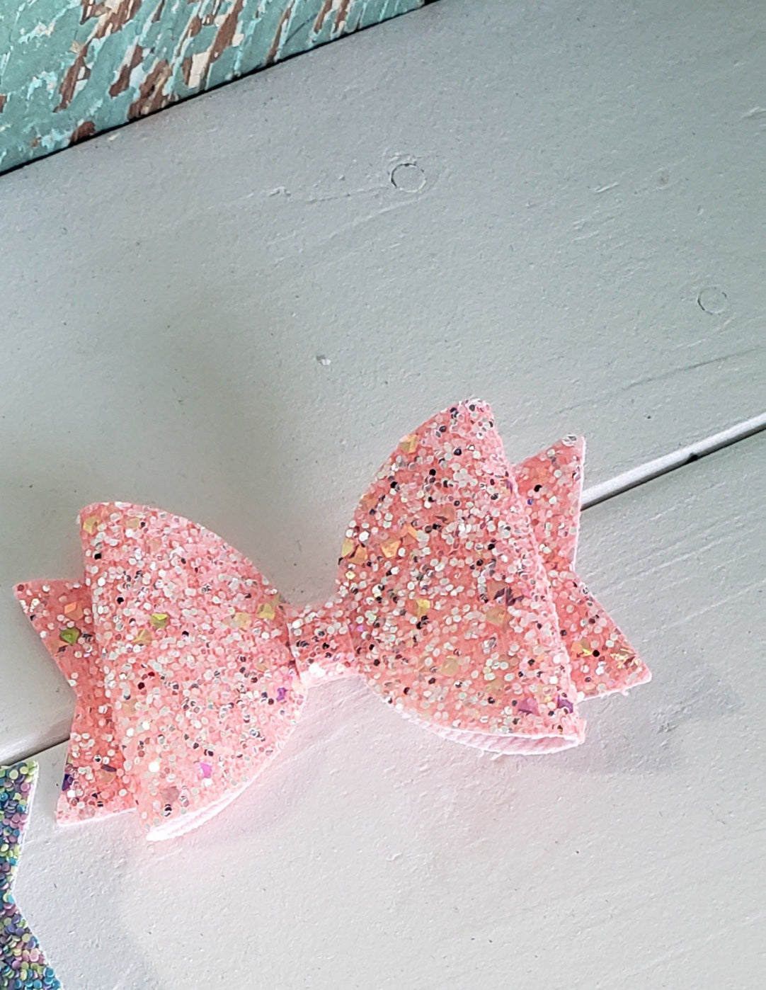 Featuring fun colors and a sprinkle of sparkle, these little bows will add a festive flair to any outfit!