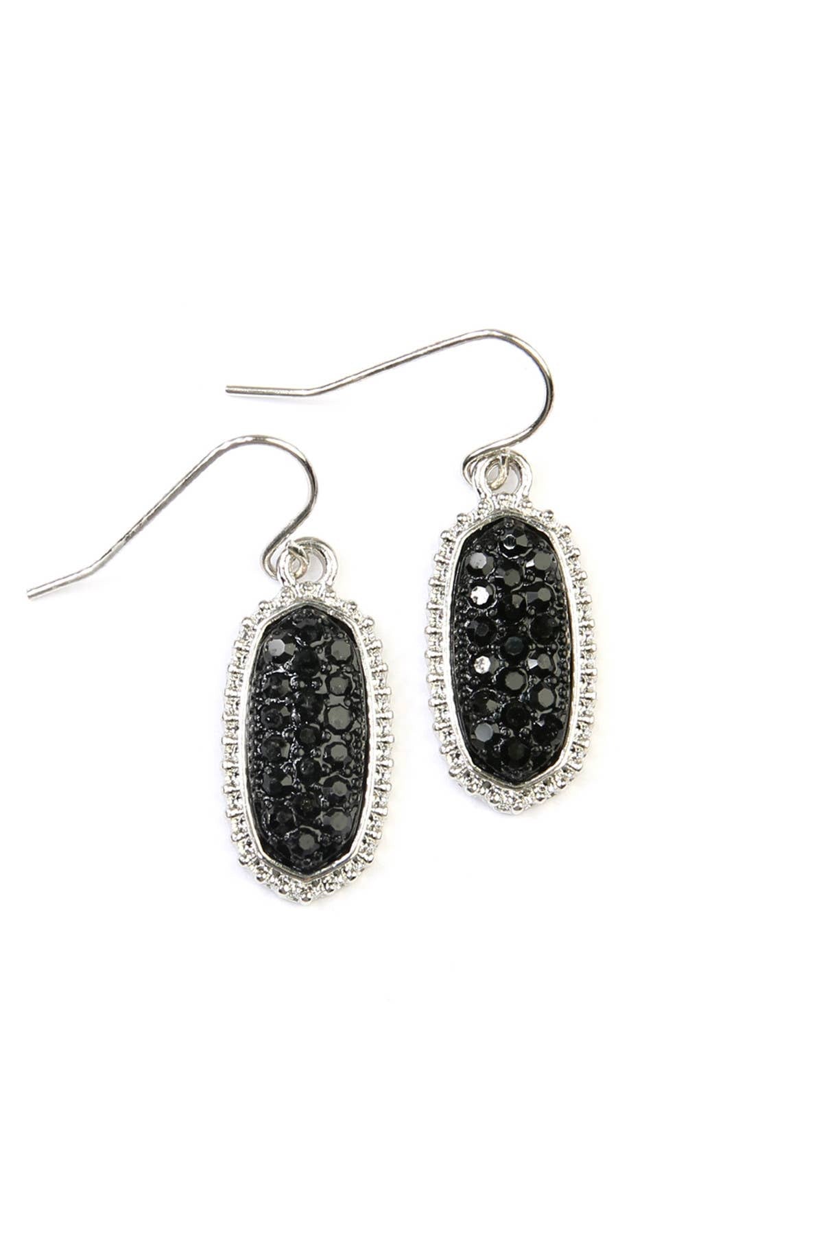 Silver Black Oval Druzy Earrings