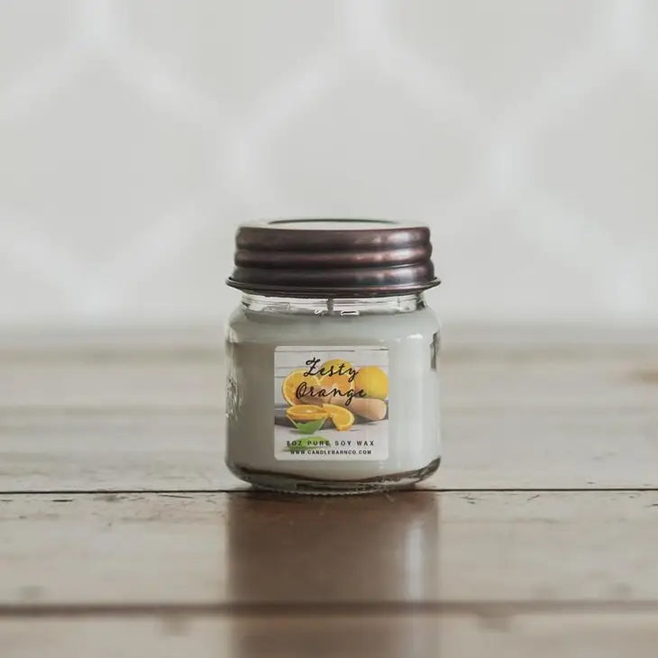 Our 8 oz. mason jar soy candles add a fresh farmhouse feel to any room. This soy candle features a vintage style lid.